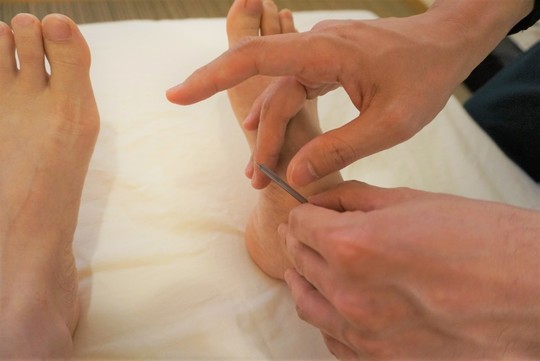 東洋医学をベースにした治療で、まず手足のツボを使って身体全体の状態を良くしていきます。